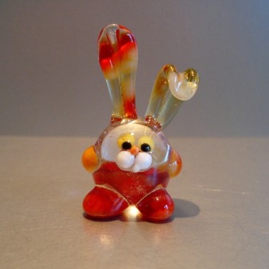 Lapin en verre opaque de couleur orange avec ses oreille transparente