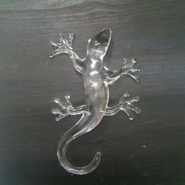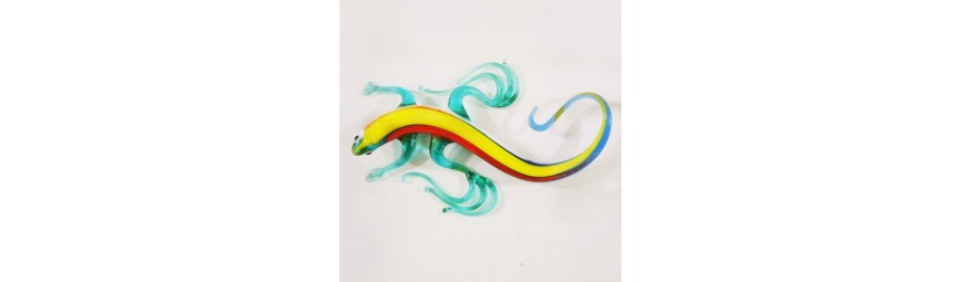 Salamandre en verre jaune et noir fait main avec des baguettes de verre