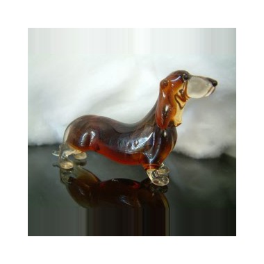Chien en verre de race Teckel de couleur marron clair ou foncé