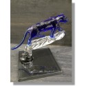 Panthère en verre réalisé à l'aide de baguettes de couleurs bleu posé sur sa branche transparente