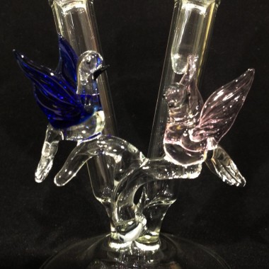 Socle en verre avec ses deux colombes en verre pouvant accueillir deux flûtes à champagne fournies.